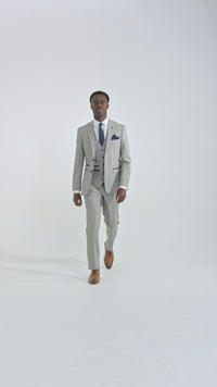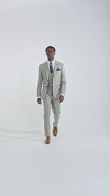 Мъжки светлосив костюм от 3 части Hugo с тъмносиньо каре и кадифени кантове